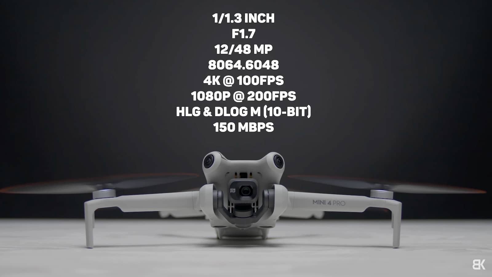 The Mini 4 Pro uses a 1/1.3-inch CMOS sensor, capable of capturing high dynamic range imagery and shooting 4K video at 100fps.